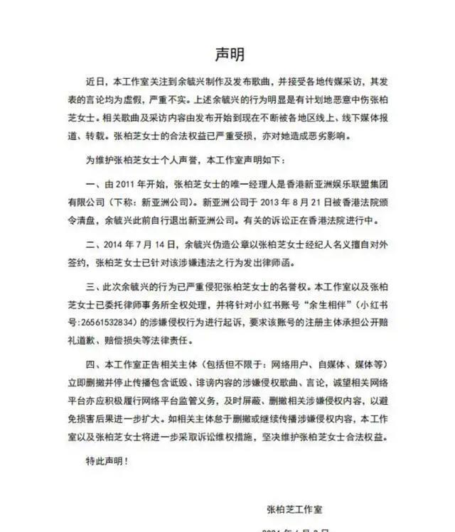 说她不惜自认为狗也要求他同情,结果一拿到签约金就违约跑路。 这其实还年打官司时的那套说辞,张柏芝方面也像之前那样做出了回应,同时还委托律师起诉了余毓兴。